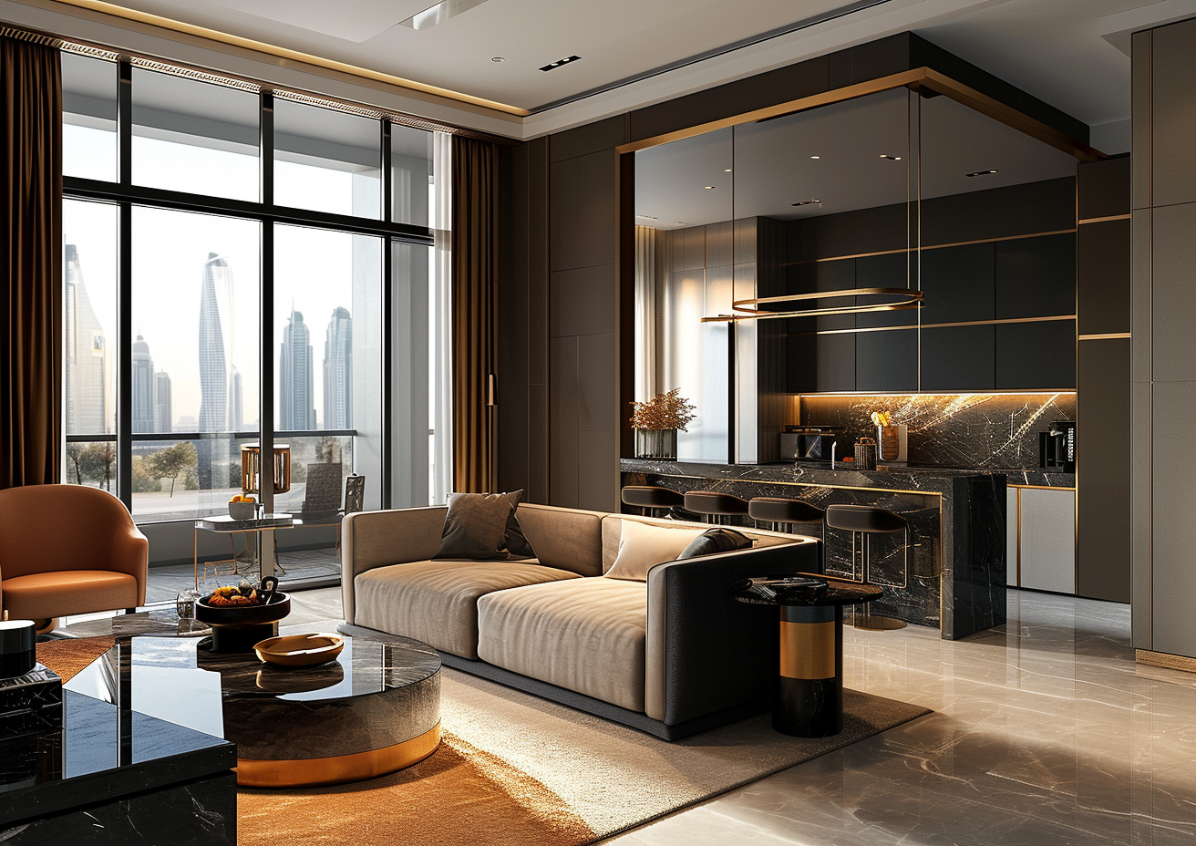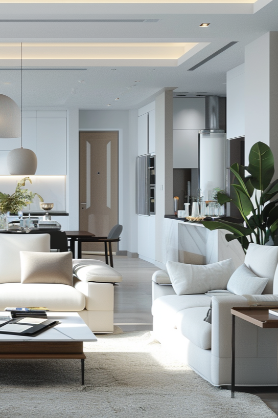 Explore interiors that echo a fusion of aesthetics, seamlessly melding traditional allure with the sleekness of contemporary design.